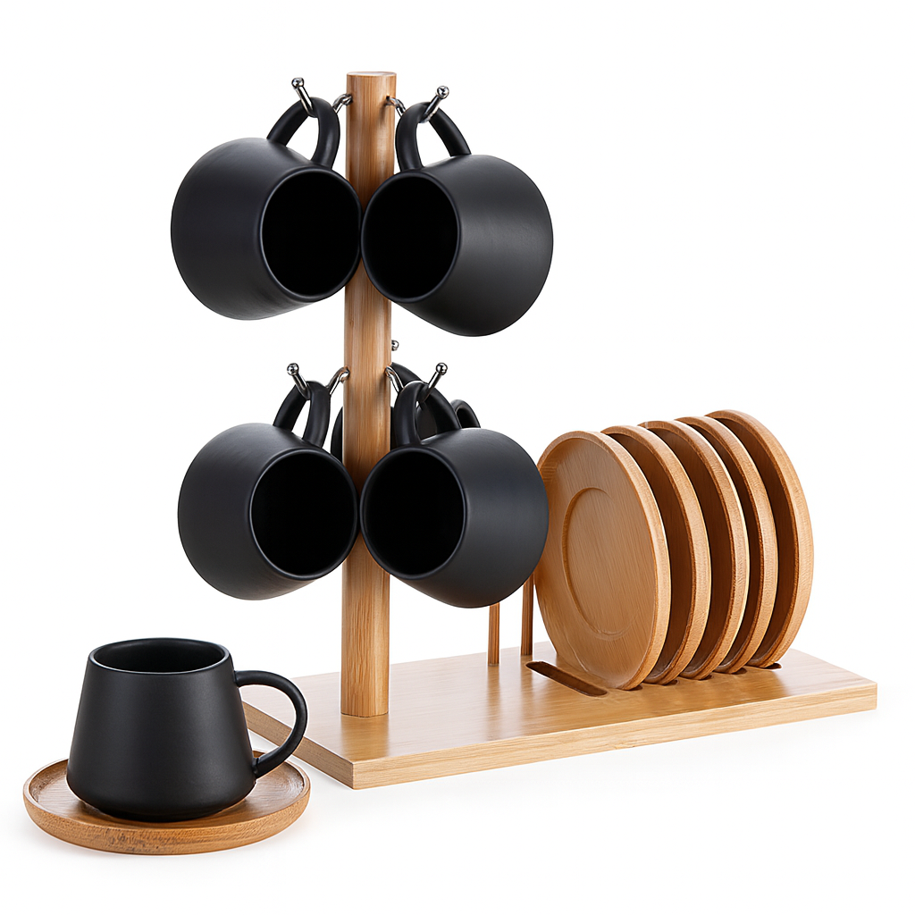 Jogo de Xícaras para Café com Pires e Suporte Oásis Preto – 7 Peças | 90ml